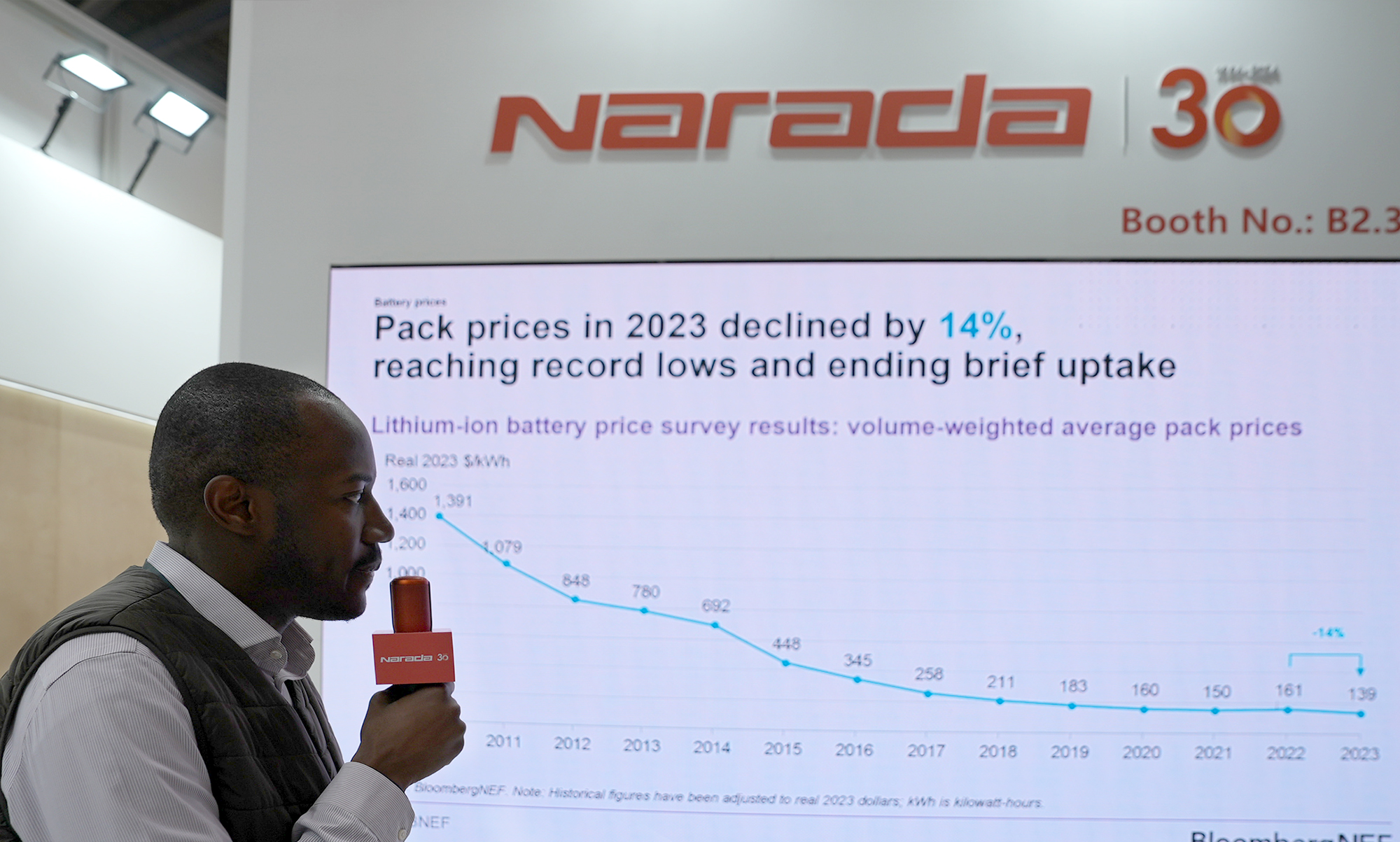 During the exhibition, Narada invited Nelson Nsitem, an energy storage analyst from Bloomberg New Energy Finance, to deliver a keynote speech on "Global Energy Storage Market Outlook" at the booth's presentation area. He provided an in-depth analysis of the global battery industry from the perspectives of the supply chain, technology, and prices, offering valuable insights into the future development trends of the global energy storage market.